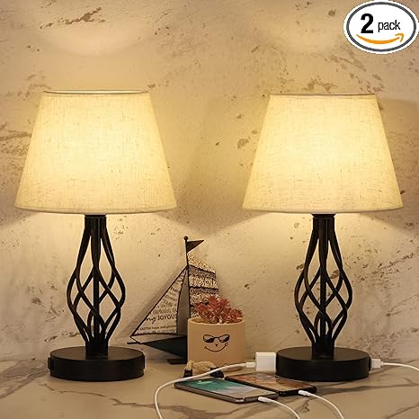 Haitral Traditional Table Lamps Set Of 2 Modern Black Nightstand Lamps With Usb Ports Ac